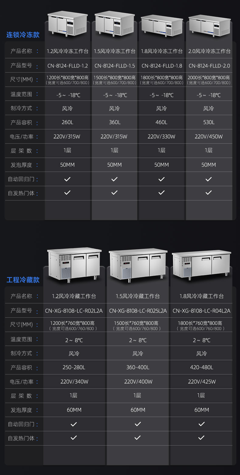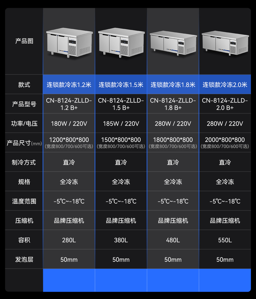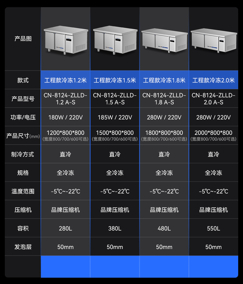 首頁 > 商用廚房設備 > 商用制冷 > (直冷/風冷)冷凍操作臺(工作臺)