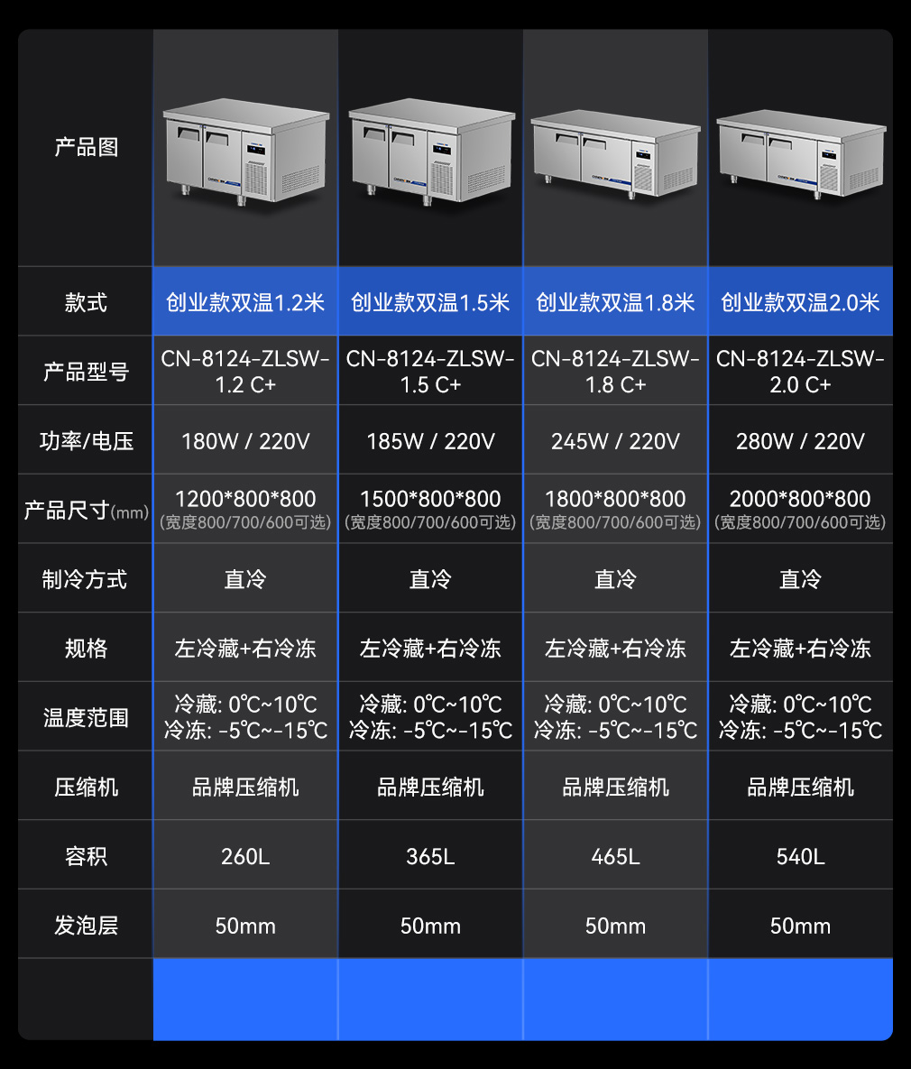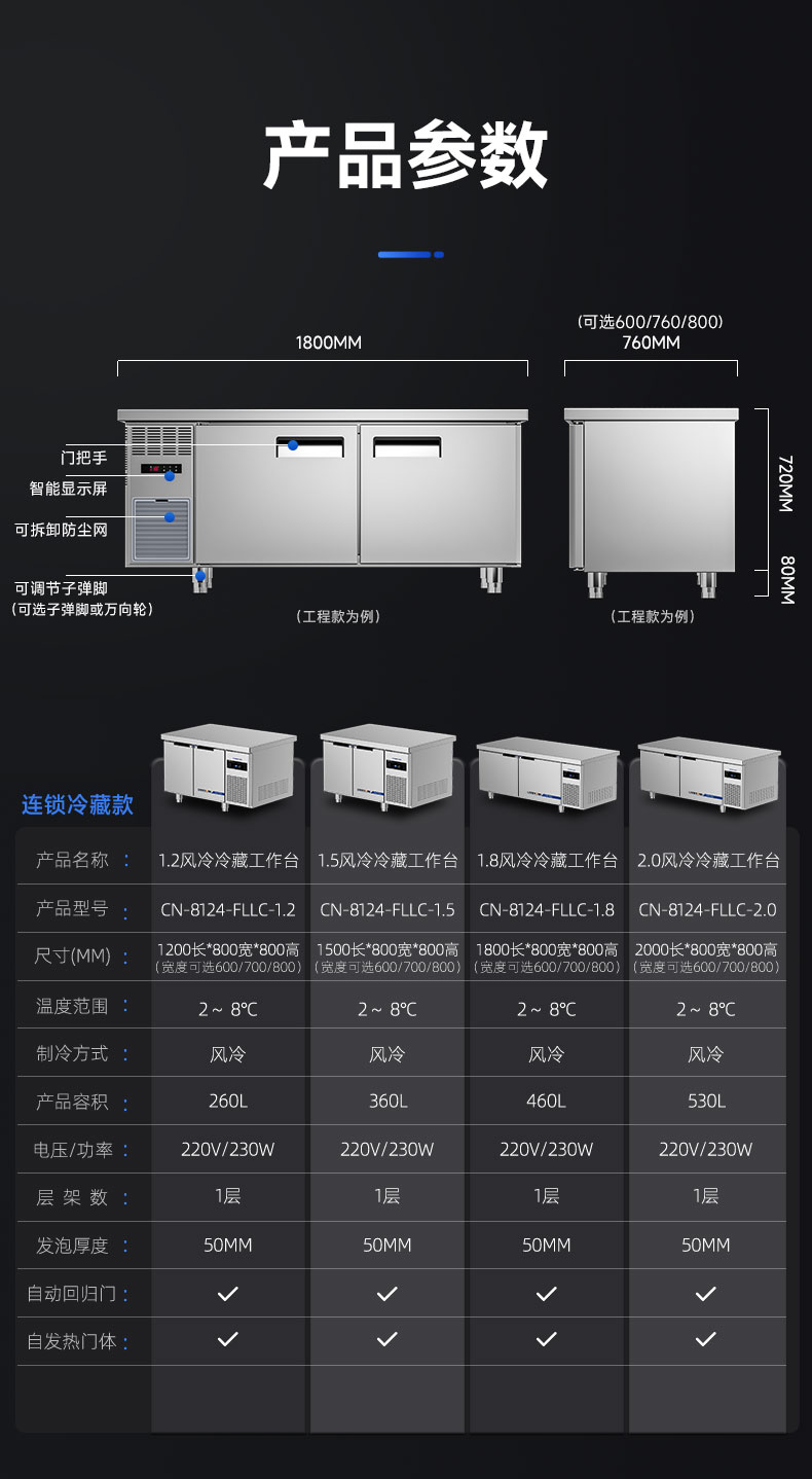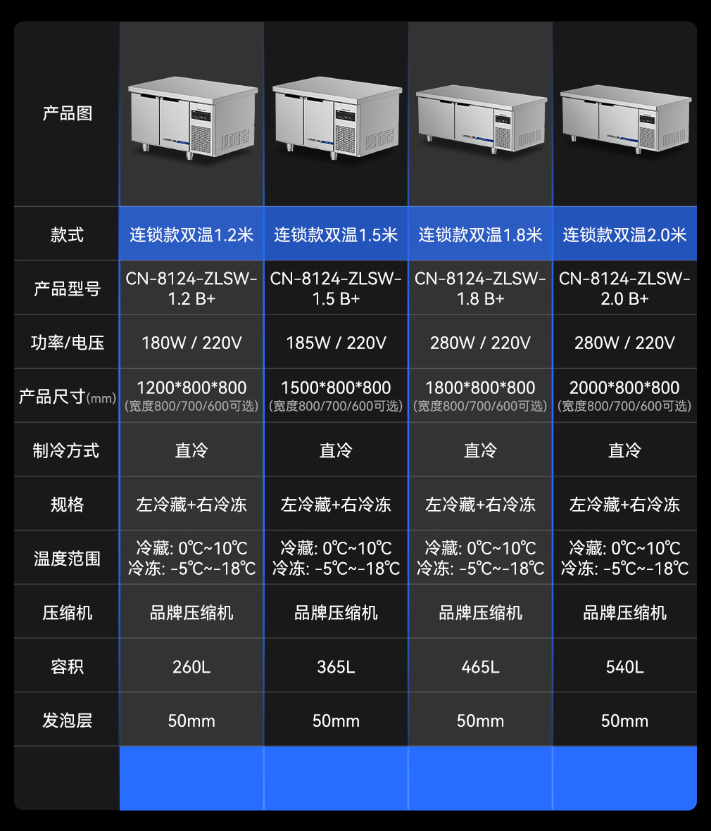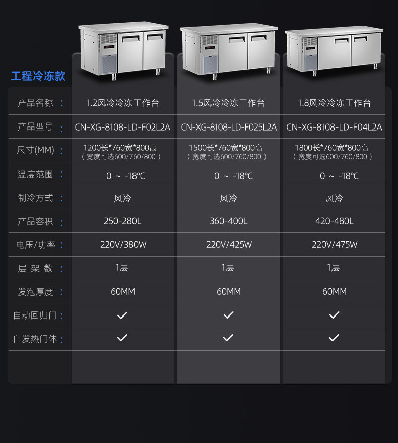 首頁 > 商用廚房設備 > 商用制冷 > (直冷/風冷)冷凍操作臺(工作臺)