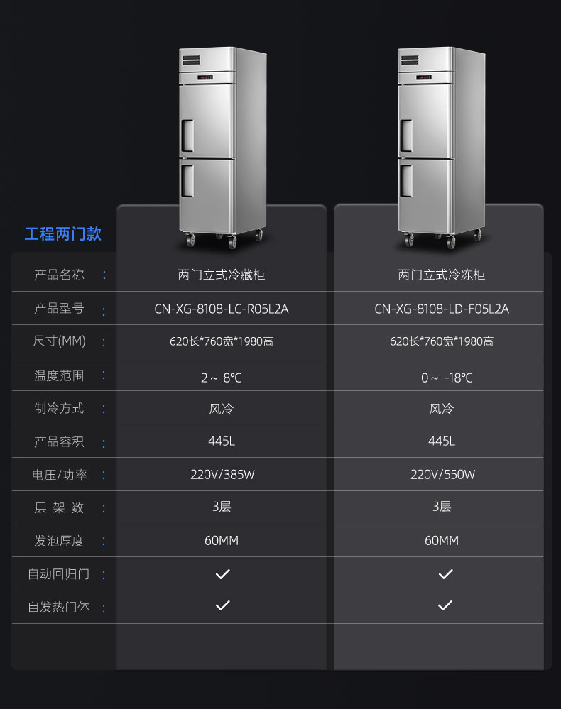 兩門立式冷藏柜