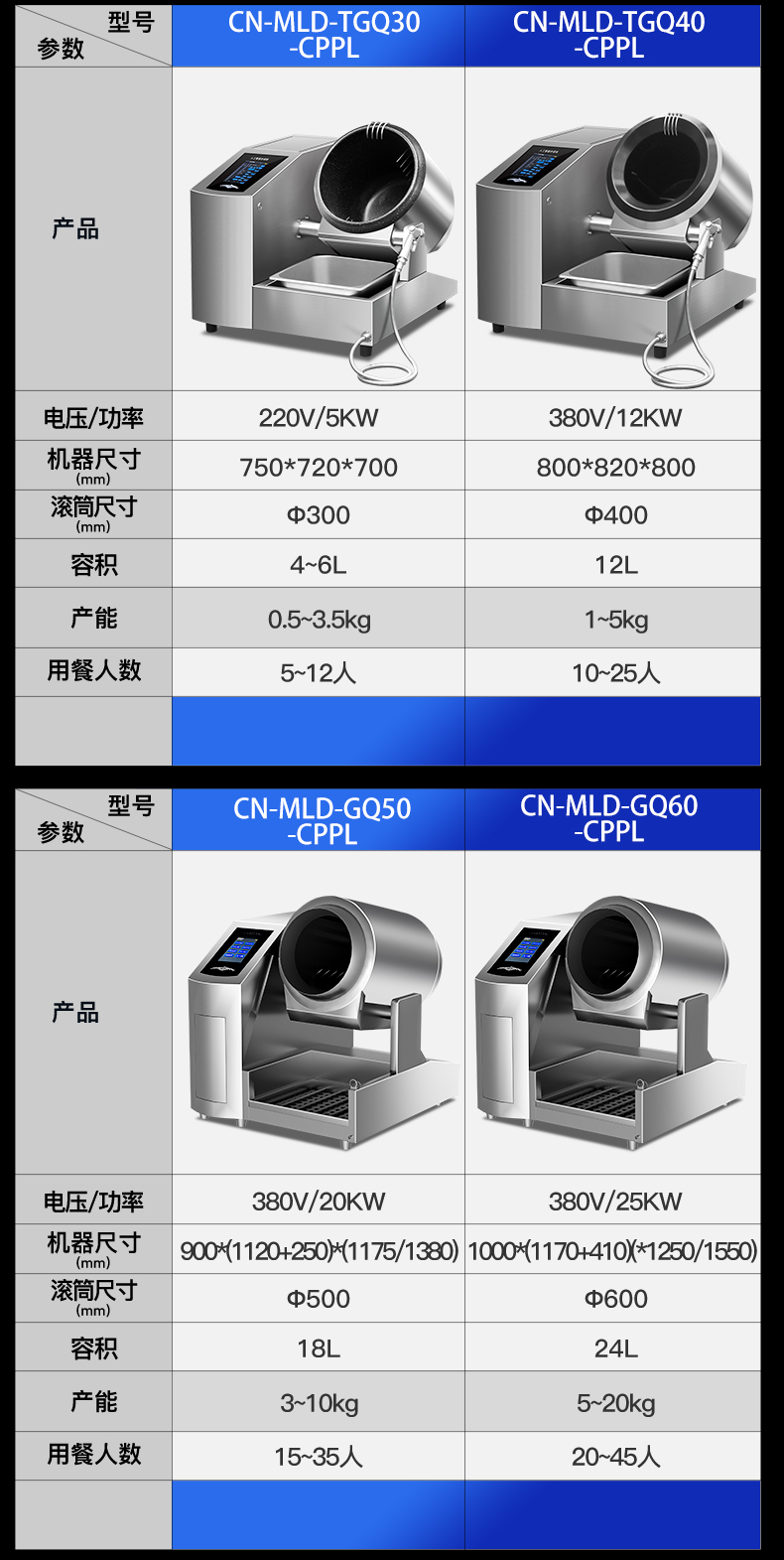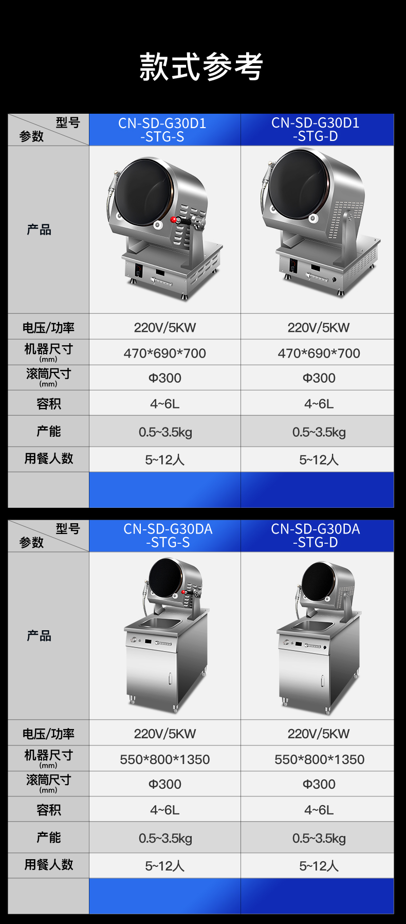 電控翻鍋+帶急停功能+紅外線測試+存儲800個菜譜(智能學習功能)+智能實時語音播報功能+帶三路自動噴料口