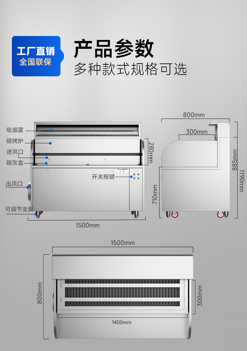 烤爐尺寸:1400*300*280mm